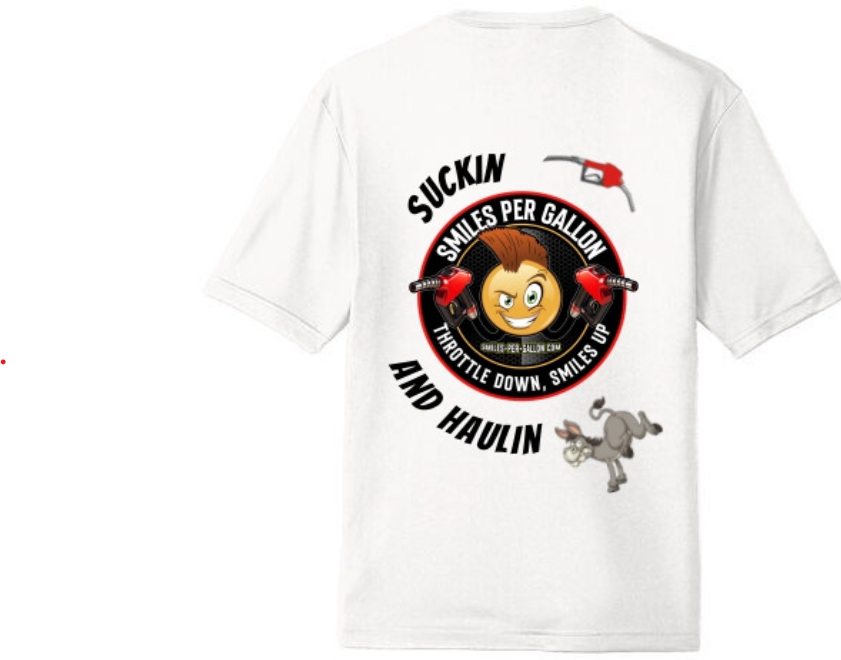 Bold Centered Logo: Full-size Smiles Per Gallon design commands attention without saying a word
